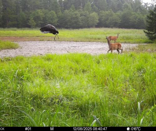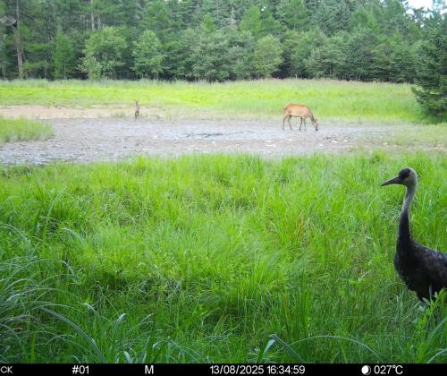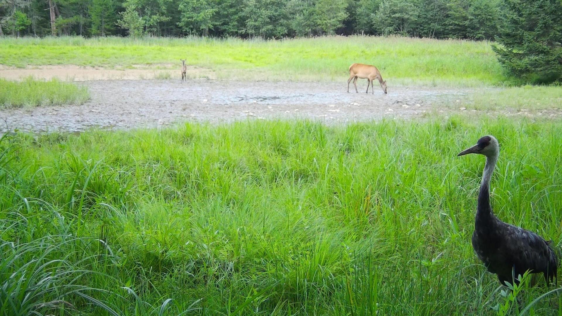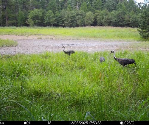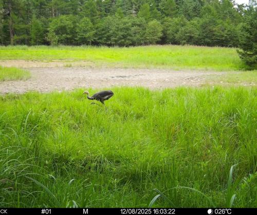 В Сихотэ-Алинском заповеднике получено первое документальное подтверждение гнездования черного журавля. При анализе снимков с фотоловушек специалисты заповедника обнаружили на кадрах семью журавлей с птенцом, снятых в августе 2025 года в районе Больших Каплановских солонцов в верховьях реки Колумбе.