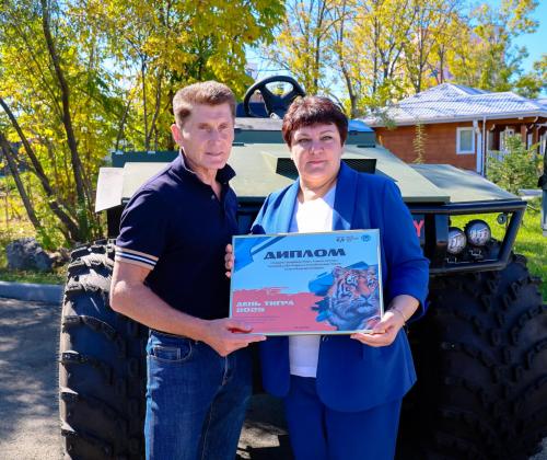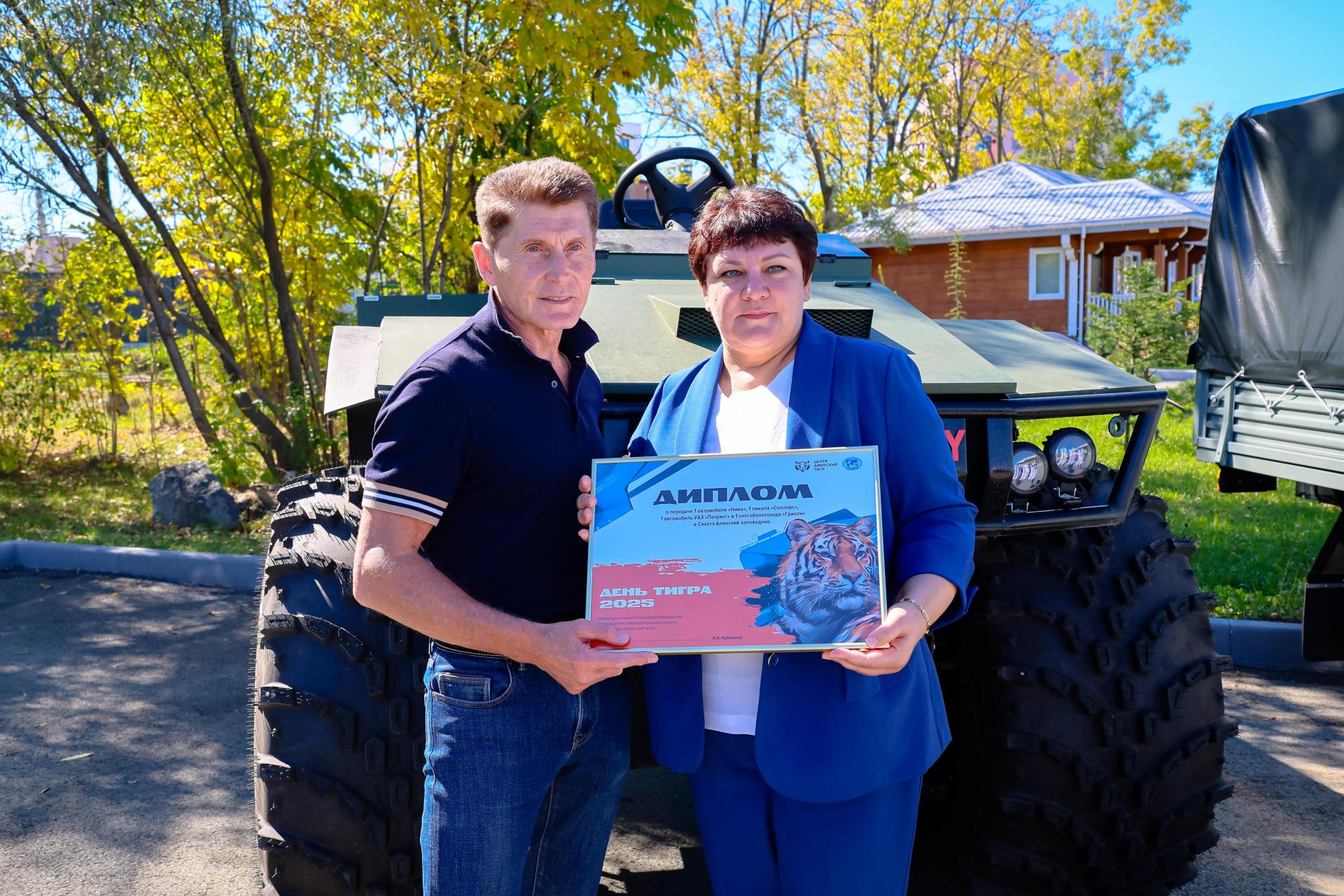 27 сентября на территории административного комплекса охотнадзора Приморского края в Уссурийске состоялась церемония передачи новой техники природоохранным организациям и федеральным особо охраняемым природным территориям региона. В мероприятии приняли участие Министр юстиции Российской Федерации, Председатель Наблюдательного совета АНО «Центр «Амурский тигр» Константин Чуйченко и губернатор Приморского края Олег Кожемяко.