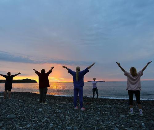 Вечером — снова практика, но уже спокойная, расслабляющая. Затем баня, ужин, а иногда — ночная экскурсия к морскому побережью с наблюдением звездного неба.